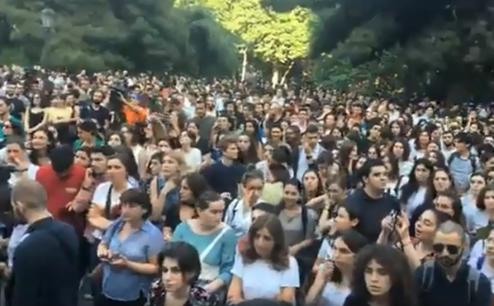 თბილისის სახელმწიფო უნივერსიტეტის პირველი კორპუსის ეზოში სტუდენტები შეიკრიბნენ.