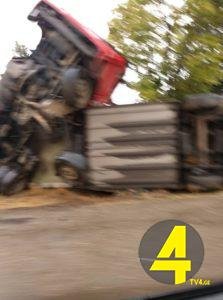 სატვირთო ავტომობილი გზის სავალი ნაწილიდან გადავიდა და ამოტრიალდა.