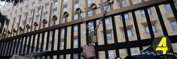 ოპოზიციის წარმომადგენლებმა მთავრობის ადმინისტრაციის შენობის ჭიშკარს რამდენიმე ბოქლომი დაადეს.