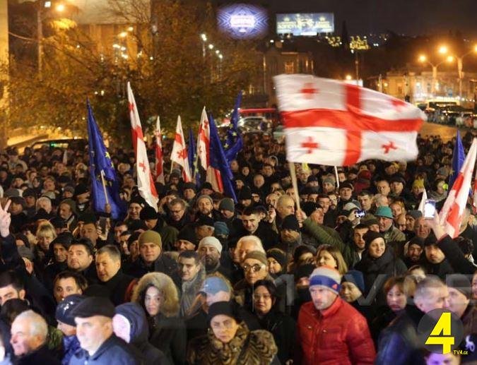 პარლამენტის შენობასთან საპროტესტო აქცია სლოგანით – „ერთად ერთის წინააღმდეგ“ მიმდინარეობს.