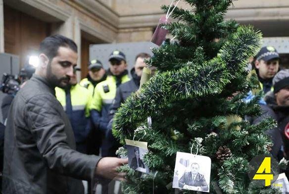 პარლამენტის შენობასთან „ლეიბორისტული“ პარტიის ახალგაზრდულმა ფრთამ ნაძვის ხე დადგა.