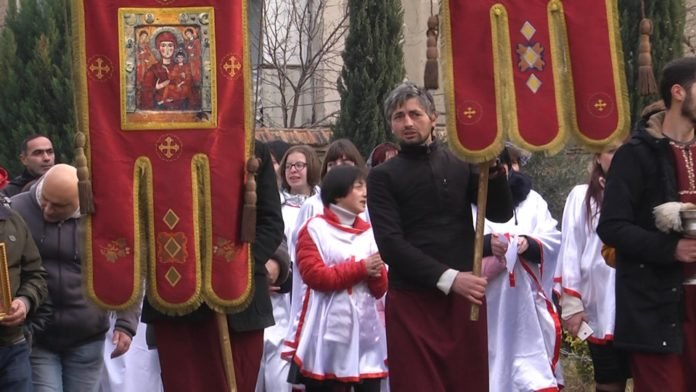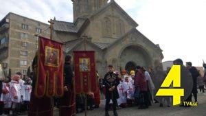 სასულიერო პირები და მორწმუნეები საშობაო სიმღერით „ალილო“ რუსთაველ მოქალაქეებს ქრისტეს დაბადებას ულოცავენ.