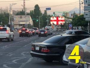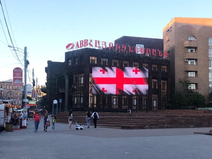 ერევნის ქუჩებში ბანერები საქართველოს დროშის ფერებში განათდა