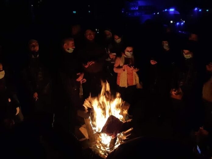 აქციის მონაწილეებმა ცენტრალური საარჩევნო კომისიის შენობასთან ცეცხლი დაანთეს.