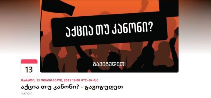 აქცია თუ კანონი? – ამ სახელწოდებით სოციალურ ქსელში სამოქალაქო აქტივისტების ჯგუფის „გავიგუდეთ“ ორგანიზებით კიდევ ერთი ღონისძიება დაანონსდა. ჯგუფის წევრების განცხადებით, ისინი პარლამენტისგან მოითხოვენ, რომ 12 თებერვლამდე მე-3 მოსმენის ჩანიშვნის ზუსტი თარიღი გახდეს ცნობილი და ჩანიშვნის დამადასტურებელი დღის წესრიგი საჯაროდ წარმოადგინონ.