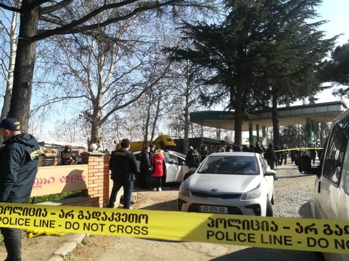 ადგილზე ექსპერტ-კრიმინალისტები მუშაობენ.