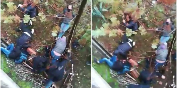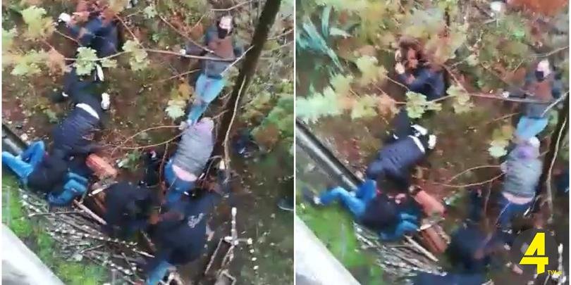 დაპირისპირების დროს, აივანზე ხის კონსტრუქცია მოიშალა და ადამიანები რამდენიმე მეტრის სიმაღლიდან გადავარდნენ.