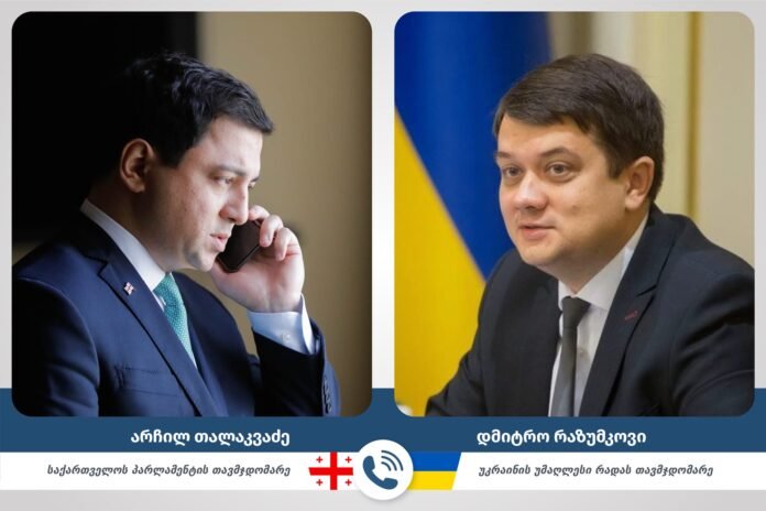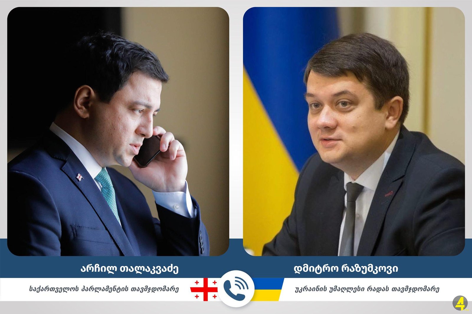 საქართველოს პარლამენტის თავმჯდომარე, არჩილ თალაკვაძე ტელეფონით ესაუბრა უკრაინის პარლამენტის თავმჯდომარეს დმიტრო რაზუმკოვს.