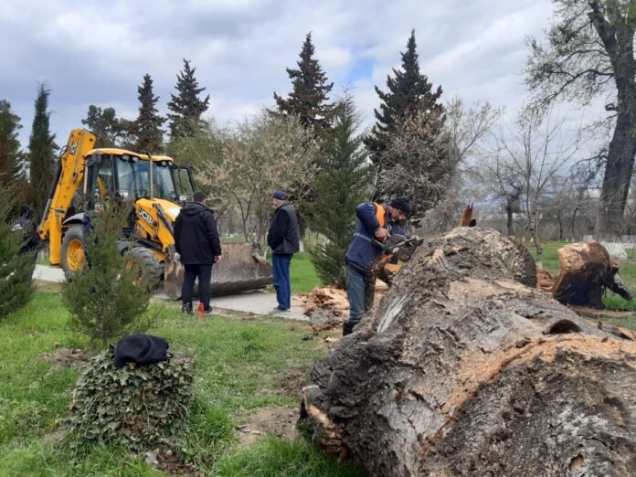 რუსთავის კულტურისა და დასვენების პარკში, ძლიერი ქარის შედეგად, საუკუნოვანი ხე წაიქცა.