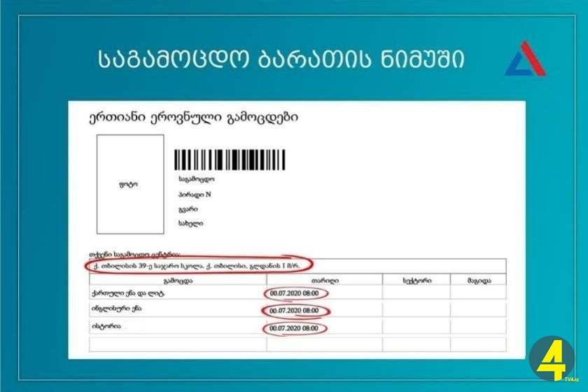 მნიშვნელოვანია, რომ ბარათზე მითითებული ყველა ინფორმაცია დაიბეჭდოს მკაფიოდ, ხარვეზების (წყვეტის, ლაქებისა და ა. შ.) გარეშე. ბარათის ამობეჭდვა გამოსაცდელებს შეუძლიათ შავ-თეთრად სტანდარტულ თაბახის ფურცელზე (A4). დეტალური ინფორმაცია იხილეთ ბმულზე“, – ნათქვამია გავრცელებულ ინფორმაციაში.