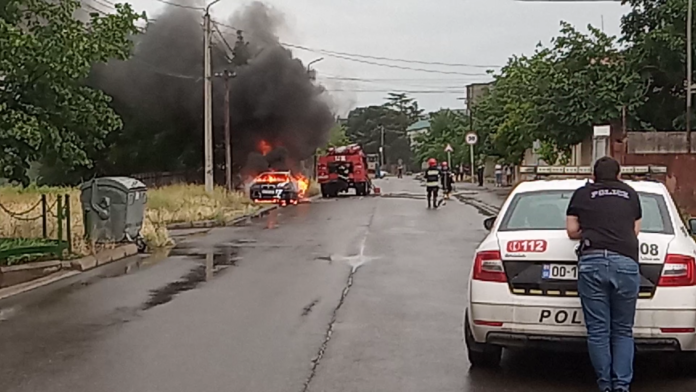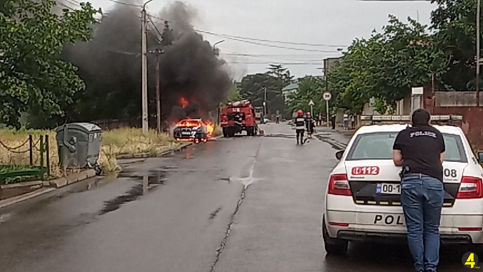 რუსთავში ავტომობილს ცეცხლი გაუჩნდა და დაიწვა[ვიდეო]