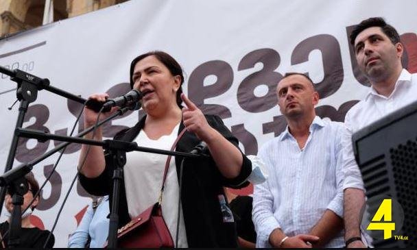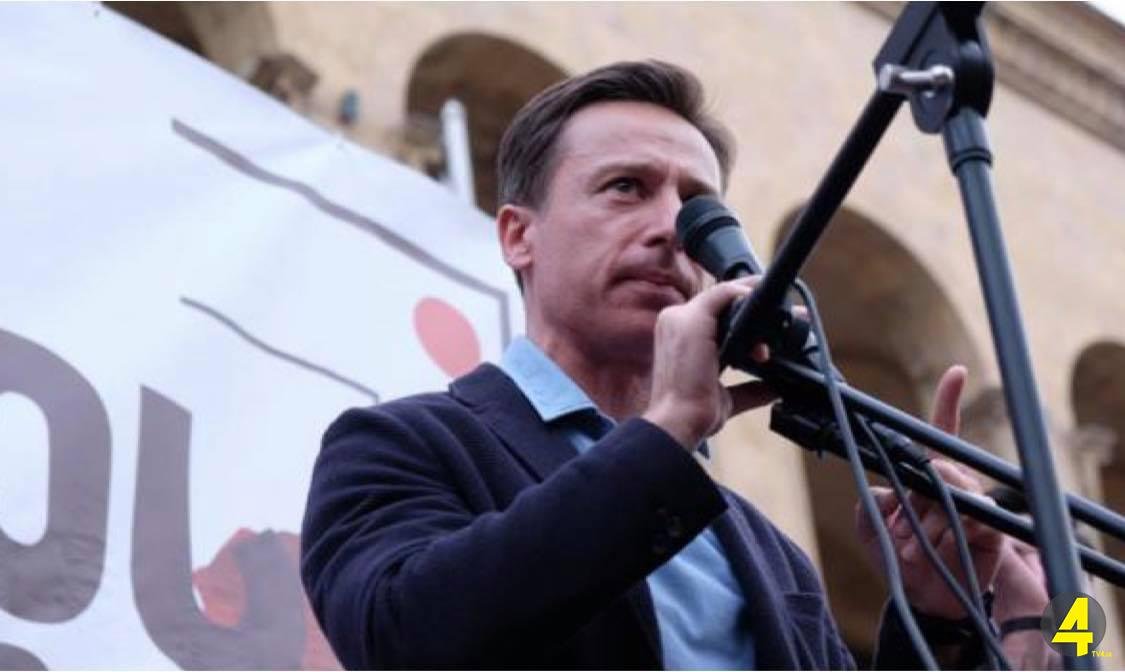 “მინდა მივმართო ბიძინა ივანიშვილს – თქვენ არ გაქვთ ბევრი დრო. ვიცი, რომ ადრე იძინებთ, მაგრამ იღვიძებთ ადრე და მაქსიმუმ ხვალ დილამდე თქვენი ე.წ. მარიონეტი პრემიერმინისტრი უნდა გადადგეს და უნდა მიყვეს მთელი მთავრობა. გადადგომა არ არის საკმარისი, ჩემს უკან არის ბანერი, რომელსაც აწერია “გადადგეს და დაისაჯოს ირაკლი ღარიბაშვილი” და საქართველოს მთავრობა, რომელმაც დედაქალაქის ცენტრში მოგვიწყო რუსული სპეცოპერაცია და შეიწირა ჩვენი კოლეგა და ეს იყო მკვლელობა. რუსეთიდან დაფინანსებული ძალები საპატრიარქოს ორგანიზებული ძალები, რომლებიც შეთამაშებული არიან საქართველოს ხელისუფლებასთან, უნდა დაისაჯონ.