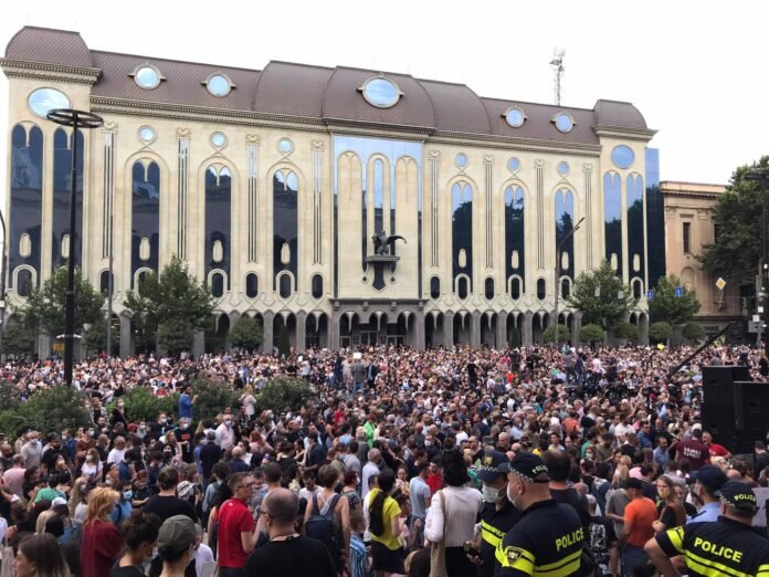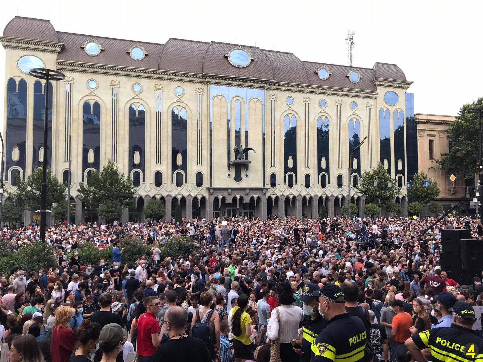 პარლამენტთან მიმდინარე აქციის მონაწილეები მსვლელობით მთავრობის ადმინისტრაციისკენ მიემართებიან, სადაც ოპერატორ ლექსო ლაშქარავას გარდაცვალებასთან დაკავშირებით ასევე მედიის წარმომადგენლები არიან შეკრებილი.