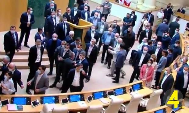 პარლამენტში ოპოზიციასა და მმართველი გუნდის დეპუტატებს შორის დაპირისპირებაა- შინაგან საქმეთა მინისტრ ვახტანგ გომელაურს ოპოზიციური პარტიების დეპუტატებმა, პარლამენტის რიგგარეშე სესიაზე, სიტყვით გამოსვლა შეაწყვეტინეს.