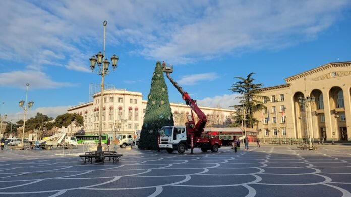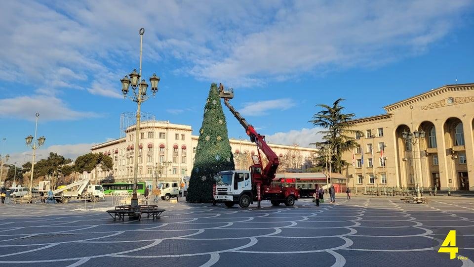 სამუშაოები რამდენიმე დღეში დასრულდება. ცნობისთვის რუსთავის ცენტრალურ მოედანზე საახალწლო ნაძვის ხე 21 დეკემბერს აინთო.