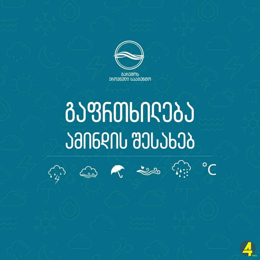 გარემოს ეროვნული სააგენტო განცხადებას ავრცელებს და მოსახლობას ამინდის გაუარესების შესახებ აფრთხილებს.