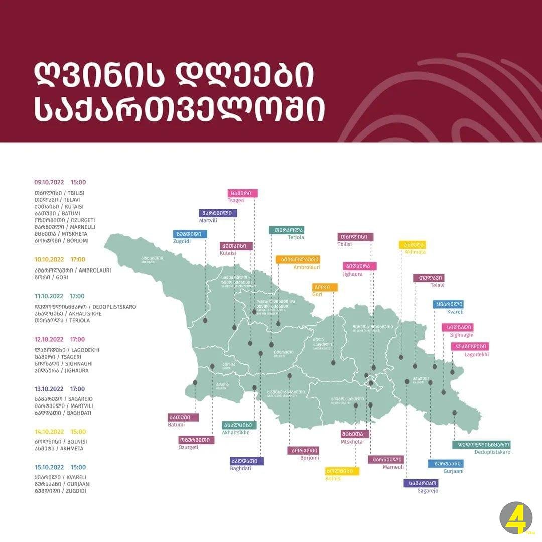 ღვინის ფესტივალი 9-დან 15 ოქტომბრამდე, საქართველოს 25 ქალაქს მოიცავს.