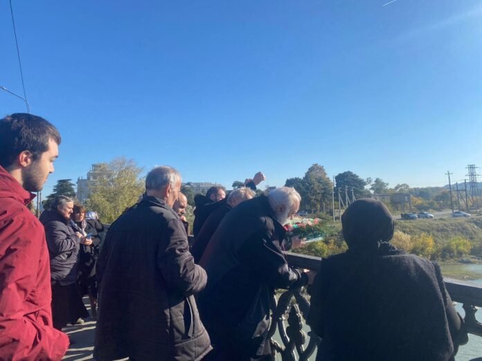 100 ათასი მოწამის ხსენების დღესთან დაკავშირებით რუსთავის ხიდიდან მტკვარში ყვავილები ჩაუშვეს