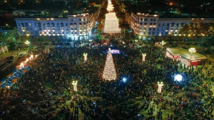 18:00 საათიდანვე ცოცხალი მისიკით სტუმრებს ქალაქის მთავარ მოედანზე მოწყობილი ,,საახალწლო სიფელიც” ელოდება.