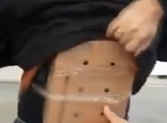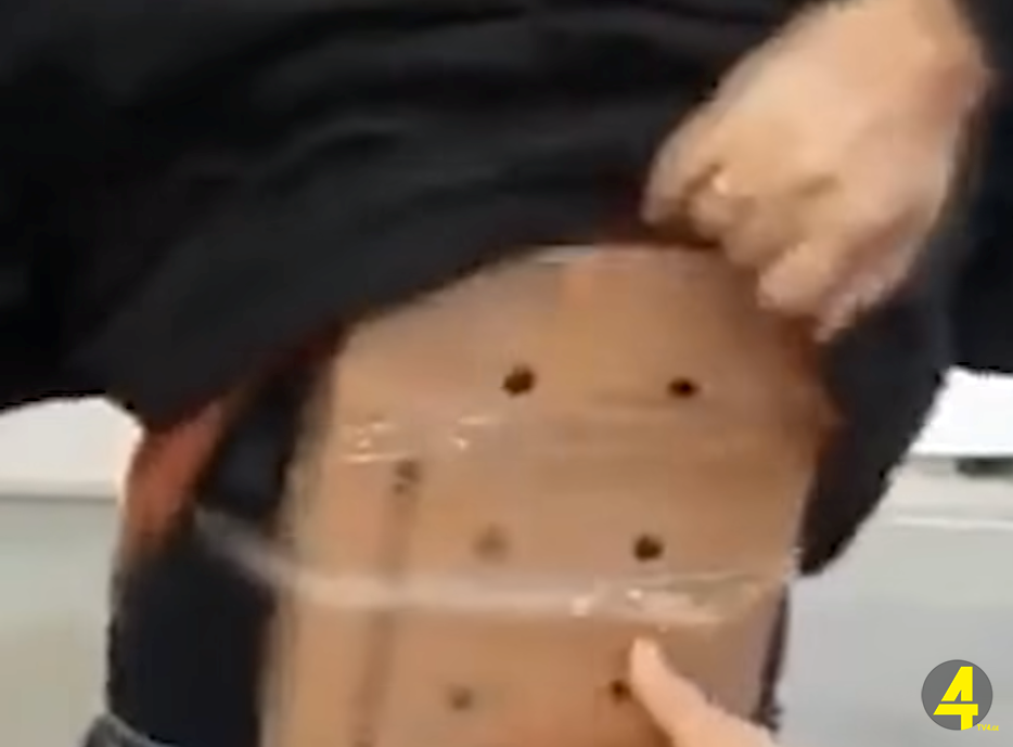 როგორც ცნობილია, მებაჟეებმა კაცზე ეჭვი მიიტანეს, რადგან მისი ქურთუკი არაბუნებრივად იყო გამობერილი. ფიზიკური შემოწმებისას აღმოჩნდა, რომ მას ზურგზე წებოვანი ლენტით ყუთი ჰქონდა მიმაგრებული.