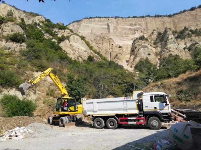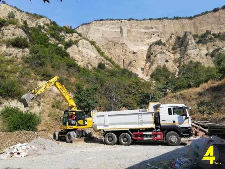 შიომღვიმის მონასტრის მიმდებარე ტერიტორიაზე, სადაც კლდის მასა ჩამოიშალა, გაწმენდითი სამუშაოები გრძელდება