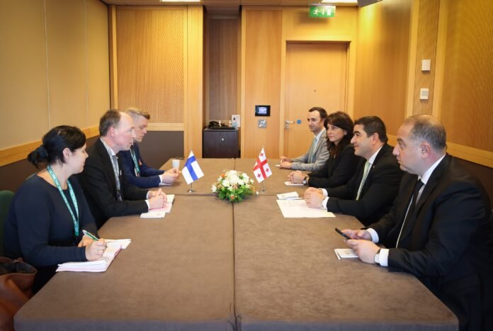 საქართველოს პარლამენტის თავმჯდომარე შალვა პაპუაშვილი ფინეთის პარლამენტის ახლადარჩეულ თავმჯდომარეს იუსი ჰალა-აჰოს შეხვდა.