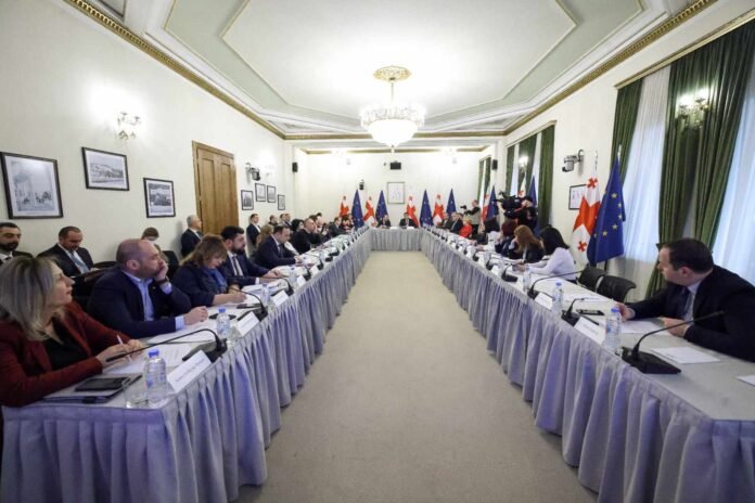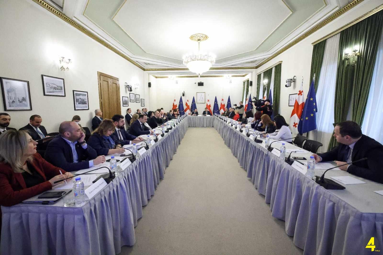 ევროკავშირის 9 რეკომენდაციასთან დაკავშირებით საქართველოს პარლამენტში მეორე შეხვედრა მიმდინარეობს.