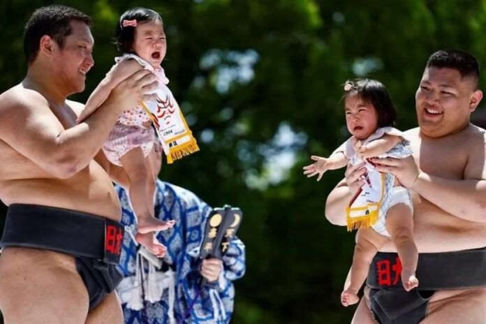 იაპონიაში სჯერათ, რომ ბავშვის ტირილი ბოროტ სულებს აშინებს და რაც უფრო ძლიერად ტირის პატარა, მით უფრო დიდი ძალით დააჯილდოვა ის ღმერთმა და მით უფრო ბედნიერი იქნება ცხოვრებაში.