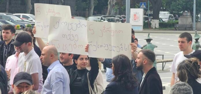 რუსთავში საკრებულოს რიგგარაშე სხდომის პარალელურად მერიასთან აქცია მიმდინარეობს
