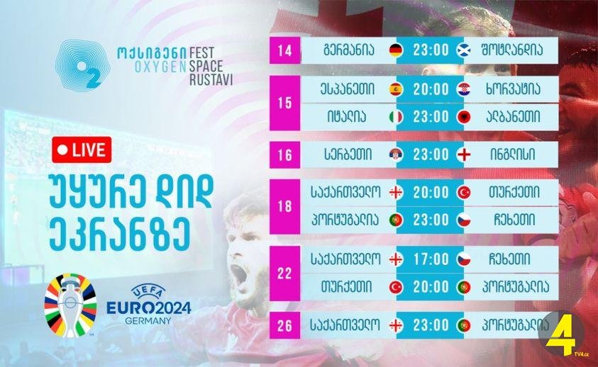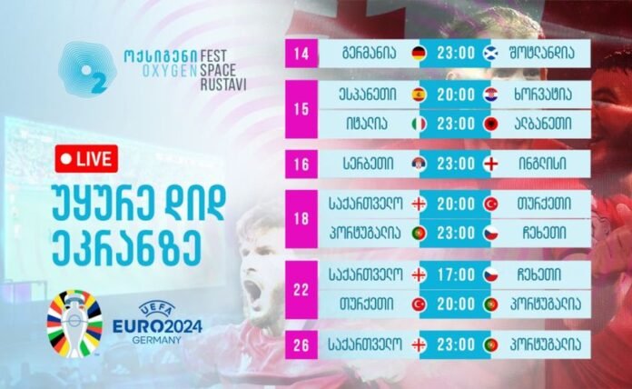 ოქსიგენფესტის ფარგლებში, რუსთავის ცენტრალურ პარკში, ევროპის საფეხბურთო ჩემპიონატის მატჩების პირდაპირი ტრანსლაცია გაიმართება.
