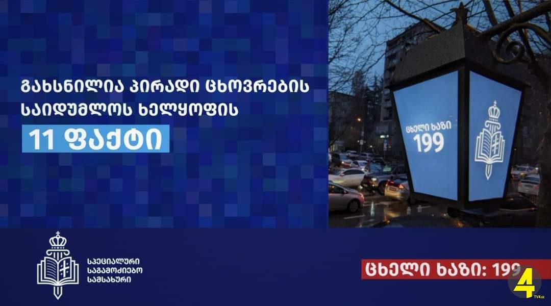 სამსახურში ფუნქციონირებს ცხელი ხაზი – 199, ასევე განცხადებით მომართვა შესაძლებელია სპეციალური საგამოძიებო სამსახურის ცენტრალურ და რეგიონულ ოფისებში – თბილისში (მ. ასათიანის ქ. №9), თელავში (მის: ერეკლე II-ის გამზირი, №16), ქუთაისში (მის: ი. აბაშიძის გამზირი N 22), ზუგდიდსა (მის: კოსტავას ქ. N 58) და ბათუმში (მის: გ. მაზნიაშვილის ქ N 54)“, – ნათქვამია ინფორმაციაში.