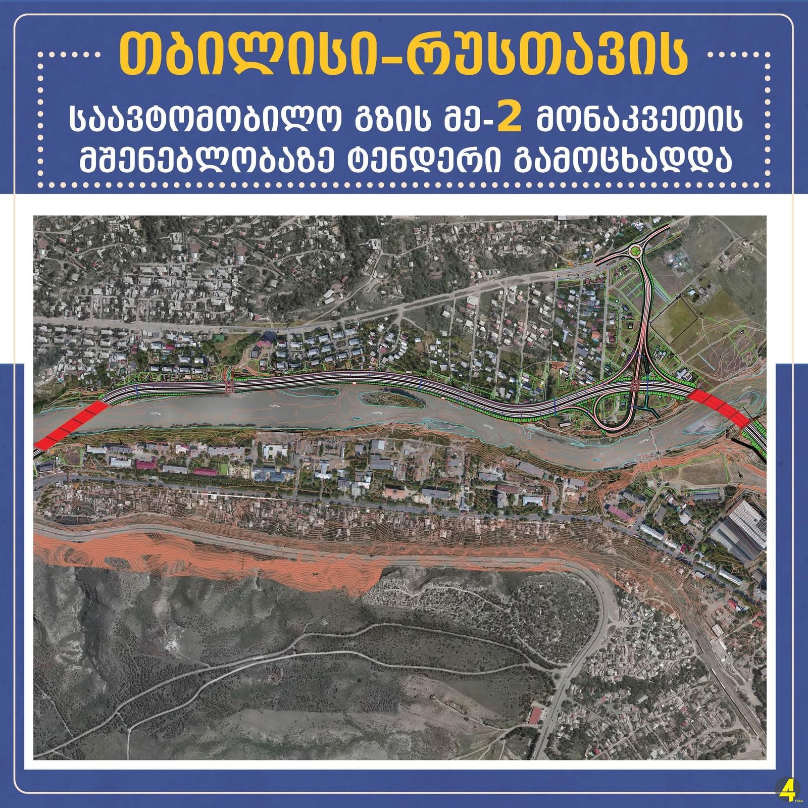 ინფრასტრუქტურის სამინისტროს მუნიციპალური განვითარების ფონდმა თბილისი–წითელი ხიდის (აზერბაიჯანის საზღვარი) საერთაშორისო მნიშვნელობის საავტომობილო გზის თბილისი–რუსთავის მე-2 მონაკვეთის სამშენებლო სამუშაოებზე ტენდერი გამოაცხადა