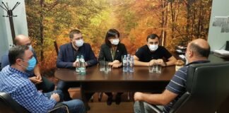 ცენტრალური და ადგილობრივი ხელისუფლების წარმომადგენლები სოკოს საწარმო "თეთრი ქუდის" ხელმძღვანელ პირებს ხვდებიან.
