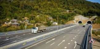 აღმოსავლეთ-დასავლეთის საერთაშორისო მაგისტრალური გზის,რიკოთის ჩქაროსნული მაგისტრალის 27 კმ-იან მონაკვეთზე ავტოტრანსპორტის მოძრაობა...