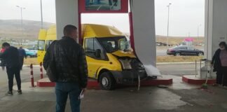“ინტერტრანსის” მიკროავტობუსი ბენზინგასამართ სადგურს შეეჯახა[ფოტო]
