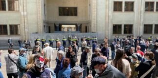 ოპოზიციის ლიდერებს პარლამენტის შესასვლელთან აქციის მონაწილეები შეძახილებით ხვდებიან და ამნისტიის კანონპორექტს აპროტესტებენ.