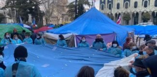 პარლამენტის შენობასთან ექიმებმა სამედიცინო კარავი გაშალეს. „ნაციონალური მოძრაობის“ წევრის სოფო ჯაფარიძის განცხადებით, კარავი აღჭურვილი იქნება მედიკამენტებითა და პირველადი გადაუდებელი დახმარებისთვის საჭირო ინვენტარით. მისი თქმით,...