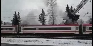 სამგზავრო მატარებელს ცეცხლი გაუჩნდა (+ვიდეო)